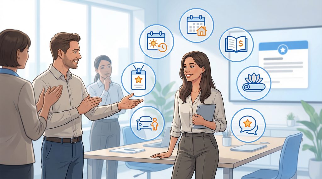 Ask your assistant directly, then build a menu that fits. Many EAs prize freedom over flash: a monthly flex day, work-from-home Fridays, or a compressed week often beats a small raise. Growth perks matter too, such as a conference pass or an annual learning stipend. A wellness allowance or an Uber credit for school pick-ups can speak louder than swag because it solves a real-life pain point.