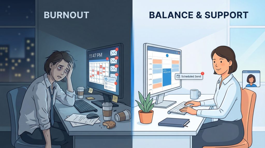• Guard vacations by lining up a virtual assistant or teammate before PTO begins and respecting that boundary.